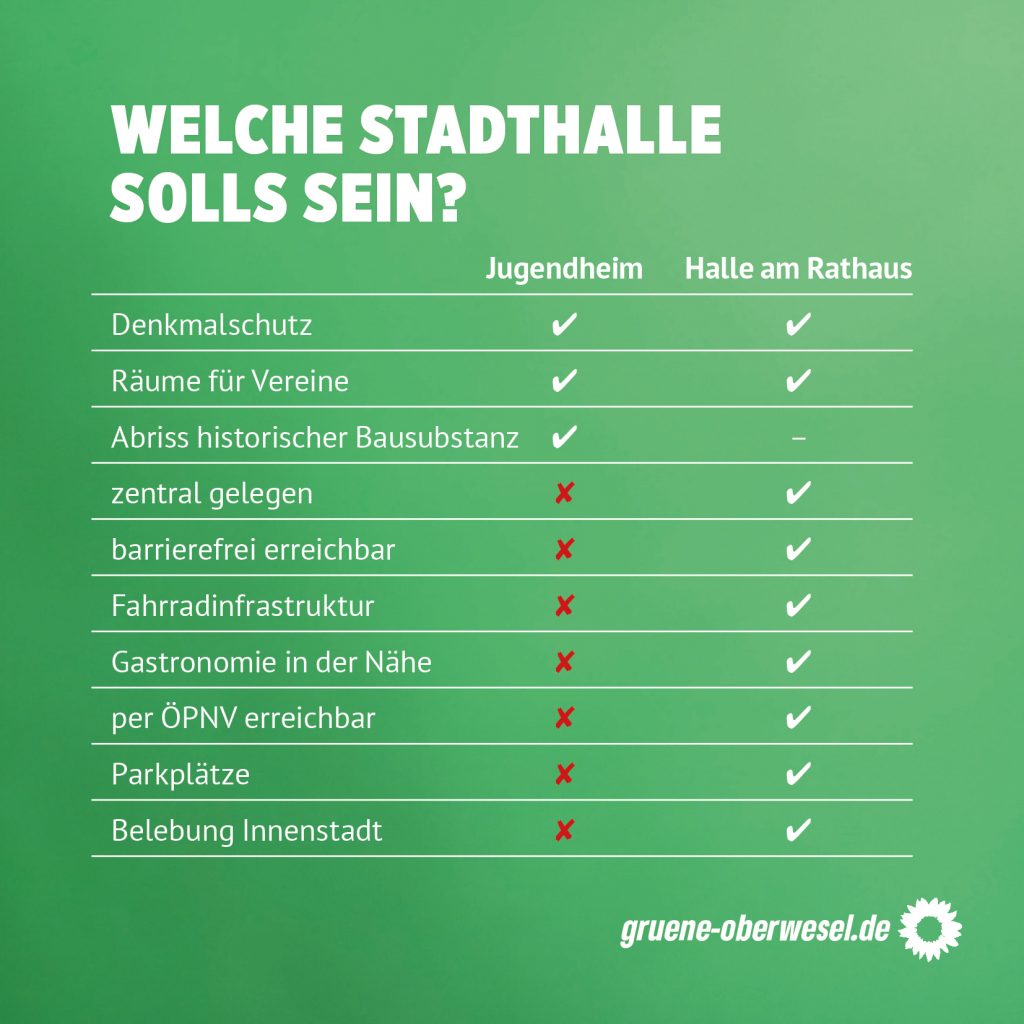 Das Jugendheim ist als Standort für eine Gemeindehalle aus Sicht der Grünen aus mehreren Gründen nicht geeignet. Das Jugendheim ist wunderschön, aber leider für viele Menschen schwer erreichbar wegen seiner Lage oben am Hang. Wer eine Gemeindehalle im Jugendheim bauen will, muss die Frage beantworten, wie die Menschen mit Rollatoren oder Kinderwagen den Berg hoch kommen sollen. Die ungeklärte Parkplatzfrage beim Jugendheim ist nur eine von vielen weiteren Fragen. Die Abrissgenehmigung für Martinsberg 5 ist abhängig davon, ob diese Fragen geklärt werden können. Doch auch wenn diese Fragen tatsächlich geklärt würden, stünde Oberwesel vor einem Sanierungsprojekt, das derzeit mit knapp 5 Millionen Euro im Haushalt steht, aber mit hoher Sicherheit deutlich teurer wird. Die Grünen halten es für unklug, den städtischen Haushalt an die Grenzen der Belastbarkeit zu bringen für eine Gemeindehalle, die nicht von allen erreicht werden kann.