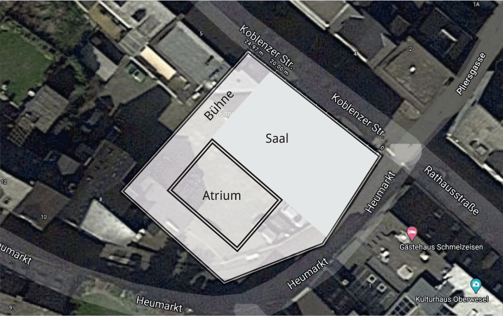 | Baufenster Saalfläche | ca. 440 m2 ca. 280 m2 plus Atrium |